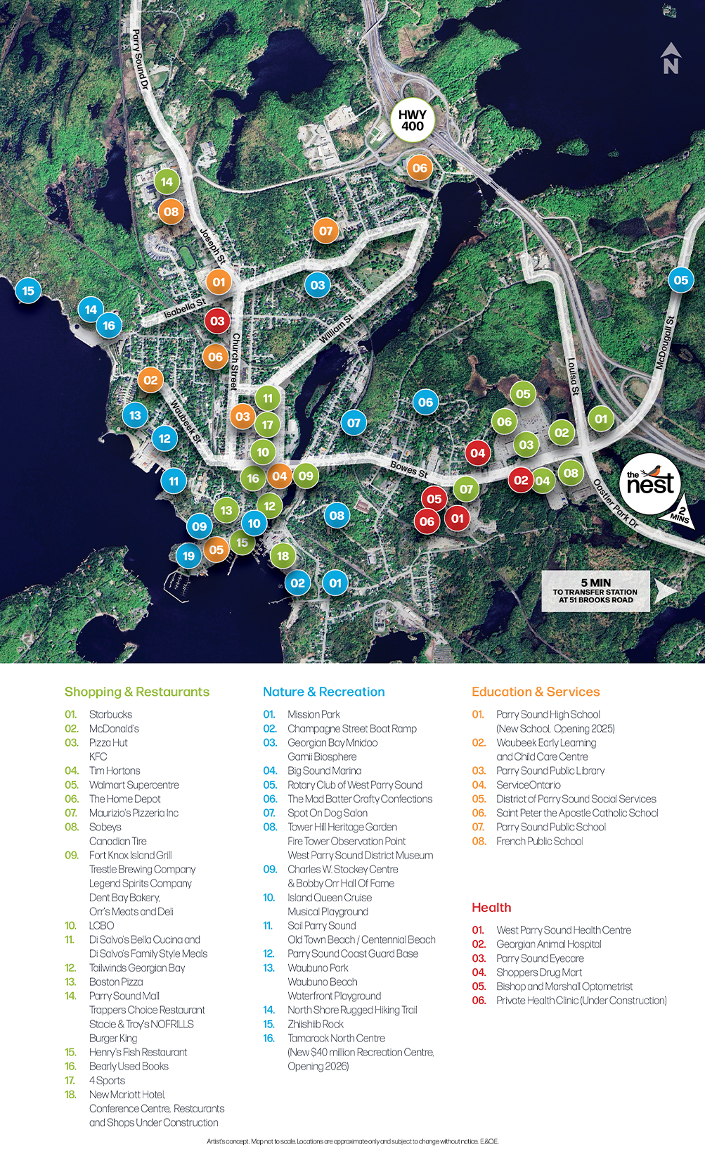 - At The Nest, you’re minutes from beaches and boating on Georgian Bay with a great choice of marinas just down the road in Parry Sound.